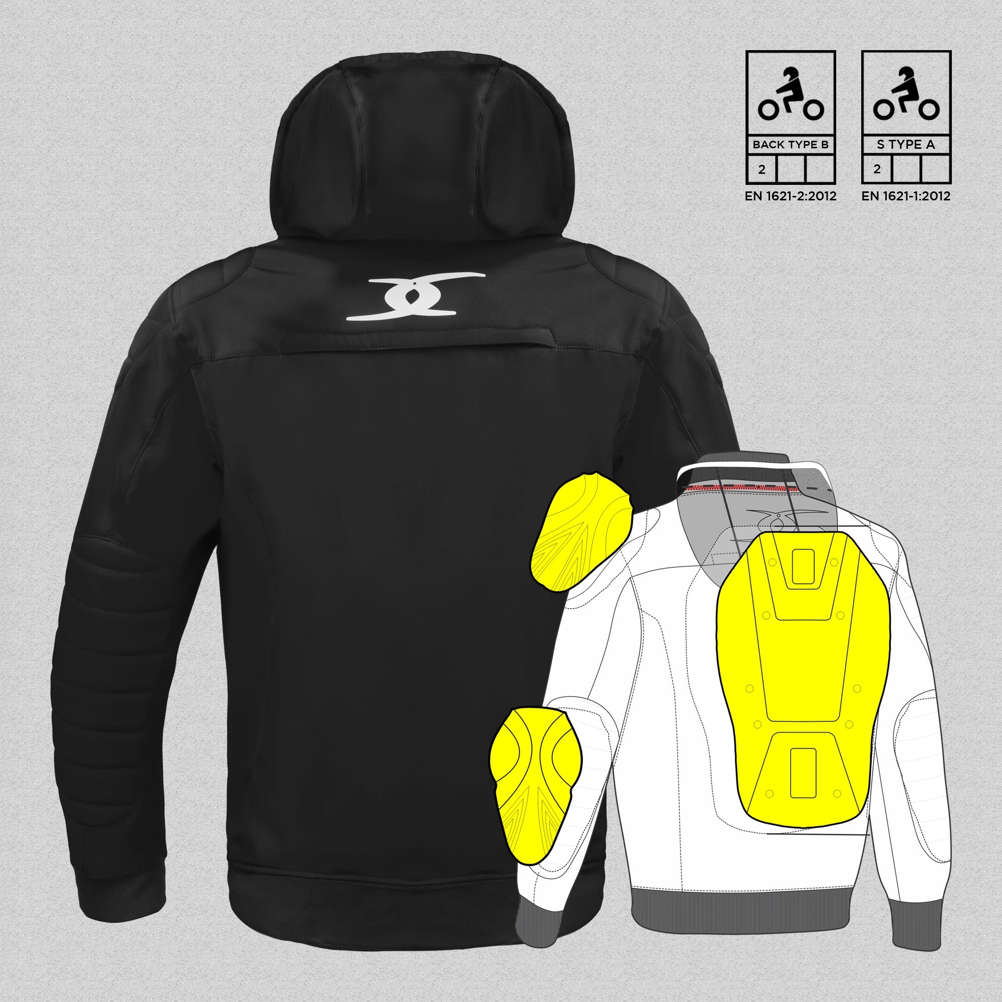 Protection is built in, not added on. CE Level 2 certified armor at the elbows, shoulders, and back forms the backbone of its safety structure, with additional layered reinforcement and discreet padding in key impact zones. This combination offers robust protection while preserving freedom of movement and a clean silhouette.